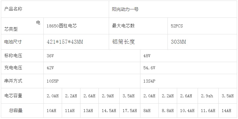 ●36V/48V 8AH~18AH 阳光动力一号